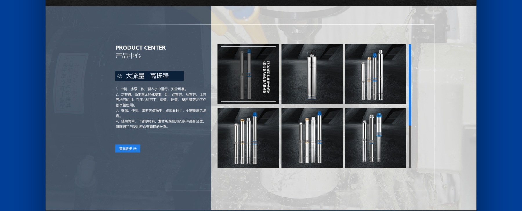 公司專業(yè)生產(chǎn)不銹鋼深井水泵,公司以人為本、實力雄厚、擁有一支龐大的技術(shù)團隊和管理人才。